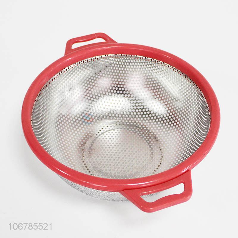 Hot sale mesh colander plastic handle stainless steel pasta colander