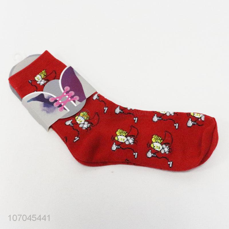 Good quality cartoon pattern women knitted crew socks