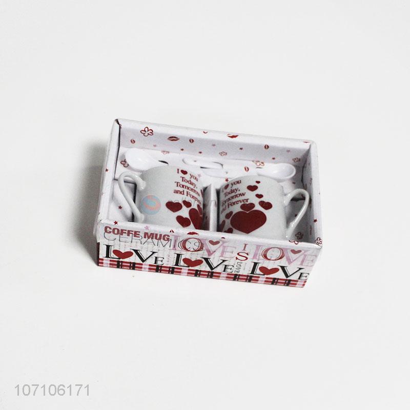 Custom Valentine's Day gifts ceramic couple cups with spoons