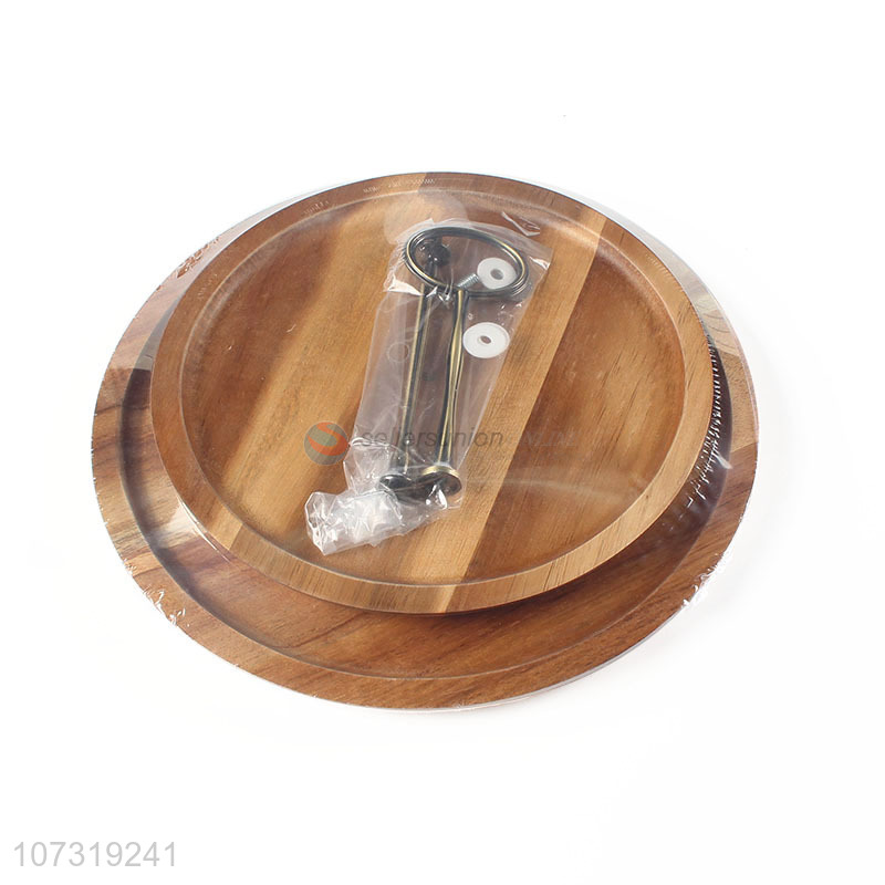 Natural Color Acacia Wood Two-Tier Round Food Tray Serving Fruit Tray