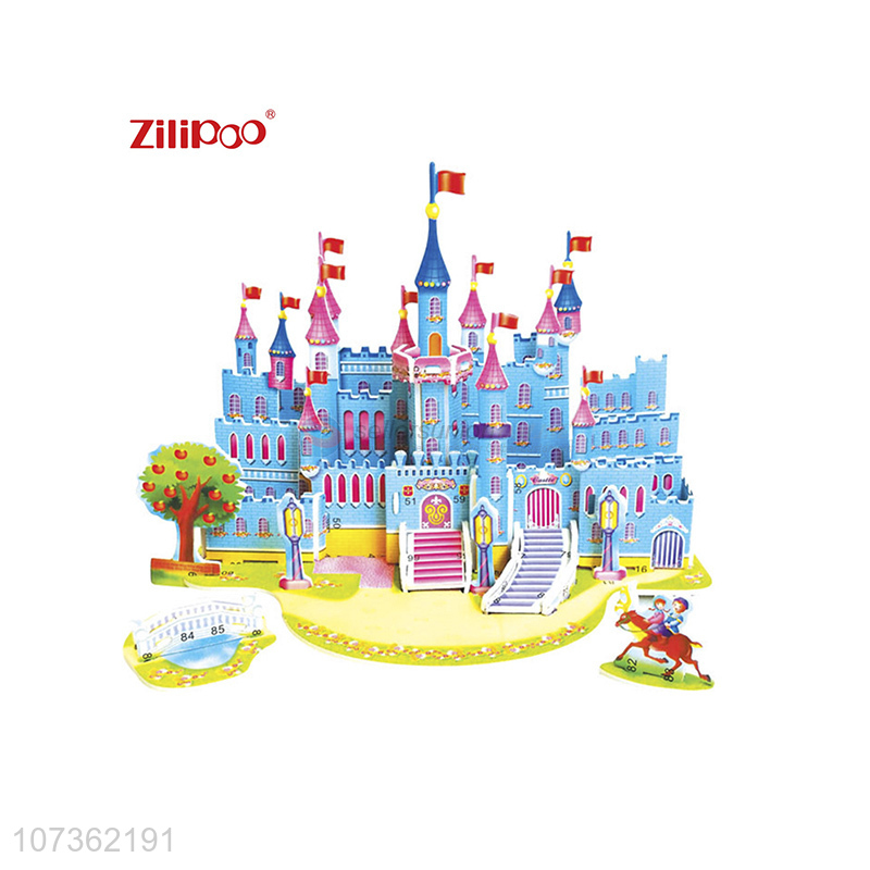 Wholesale 3D Paper Jigsaw Blue Castle Puzzle Toys Kids Diy Educational Toys