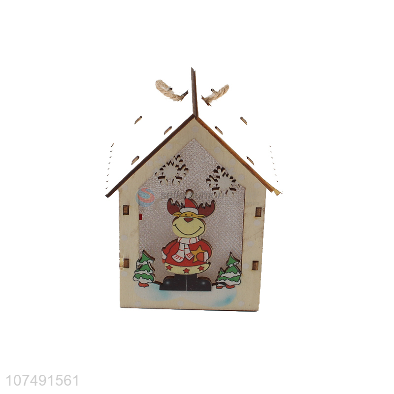 Wholesale House Shaped Led Light Wood Christmas Pendant For Decoration