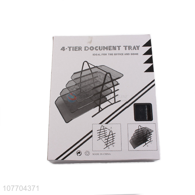 Wholesale desk organizer 4-tier file tray metal mesh document tray