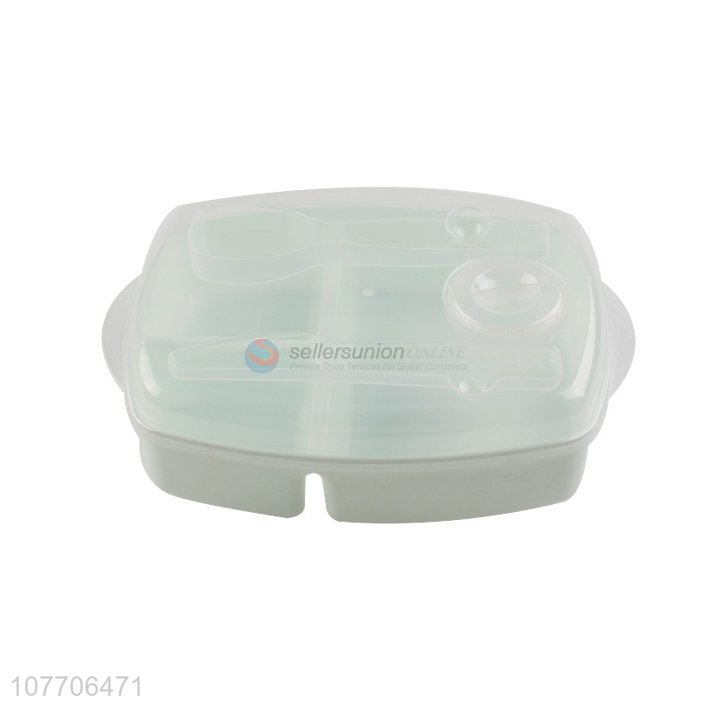 Wholesale portable lunch box divided grid lunch box with spoon