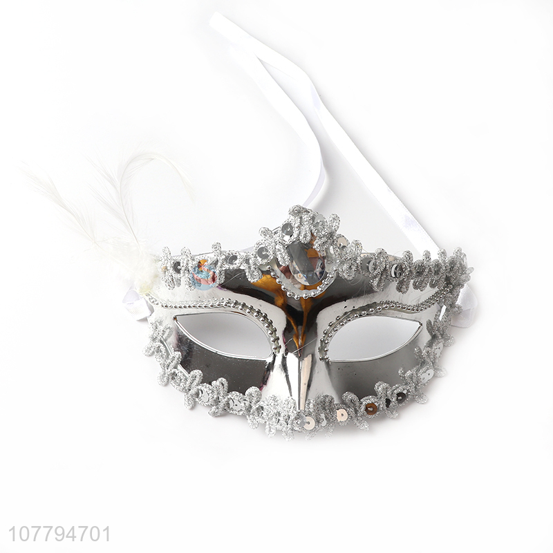 Hot sale ladies venice mask sequined party mask with feather