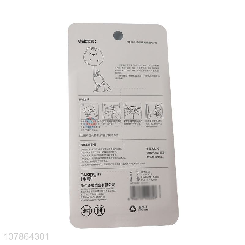 China supplier cartoon sticky hook punch free bathroom hook