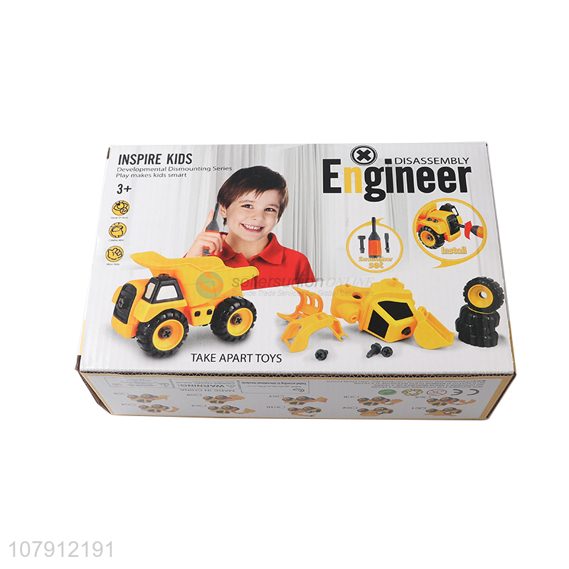 Hot sale plastic toy vechicle diy disassembly construction road roller truck