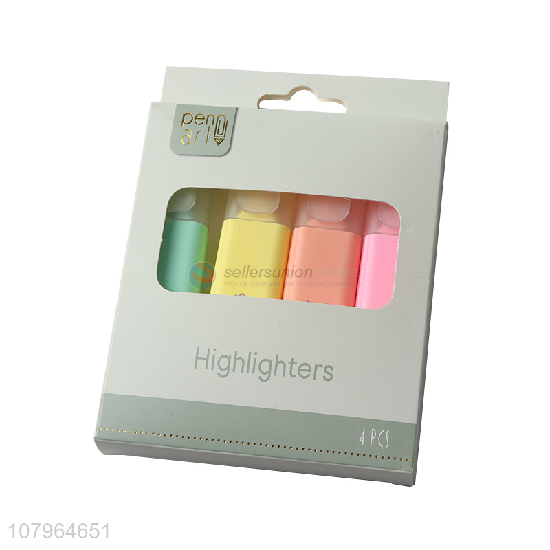 Hot selling candy color highlighter student portable marker pen 4pcs