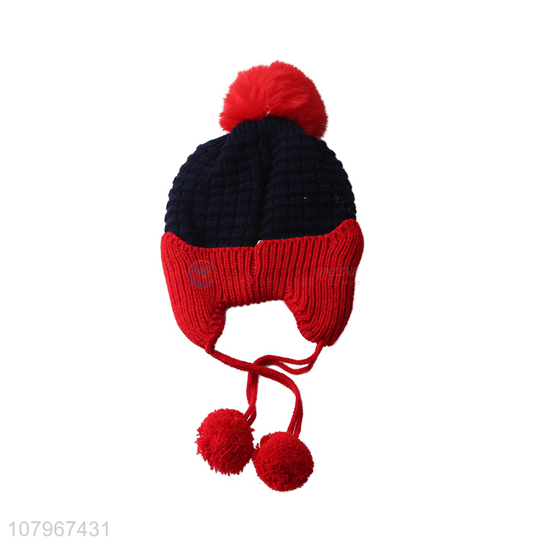 Factory direct sale boy girl winter knitted beanie cap toddler earmuffs hat