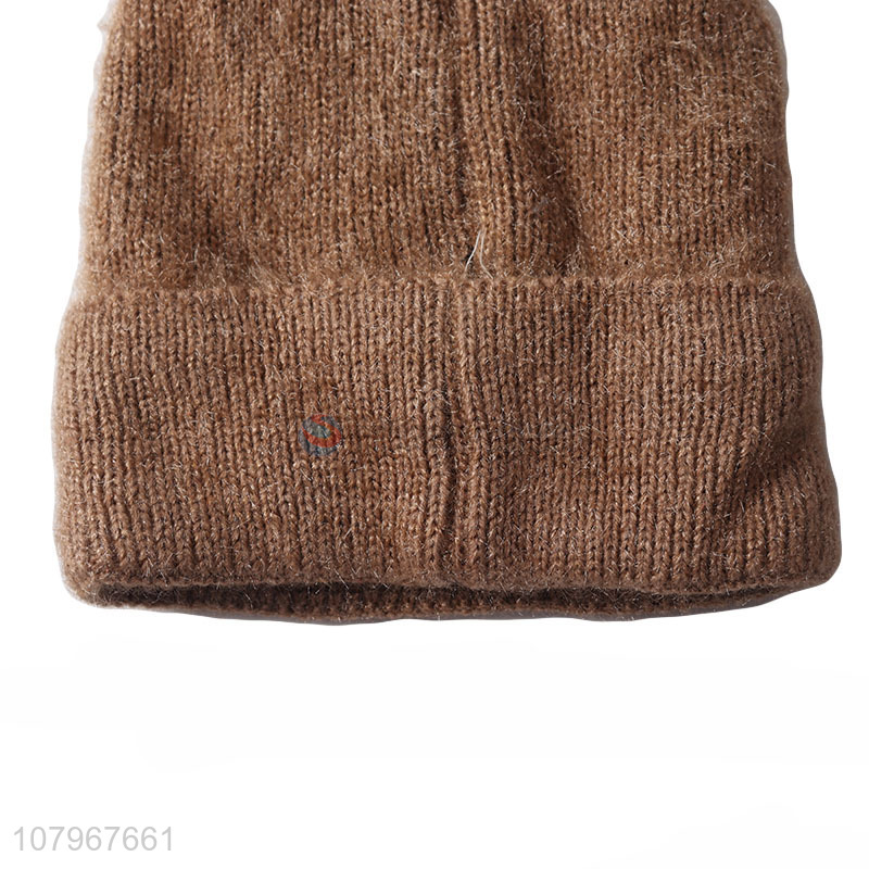 China wholesale solid color men winter thickened knitted beanie hat