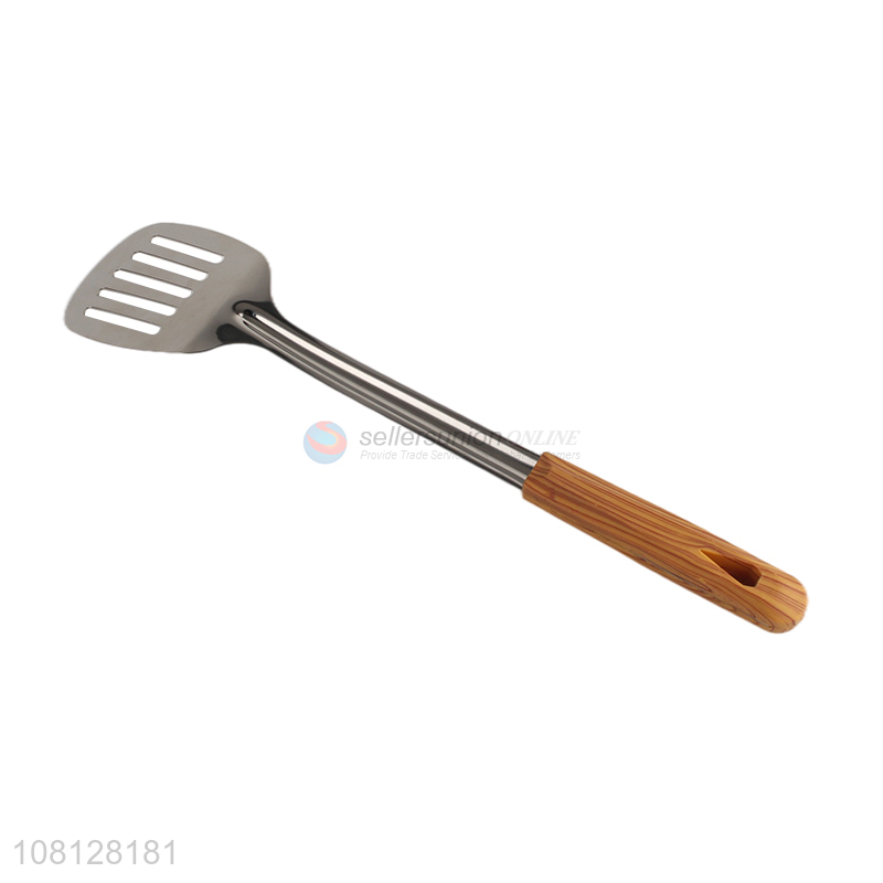 Good quality stainless steel slotted spatula with wooden handle