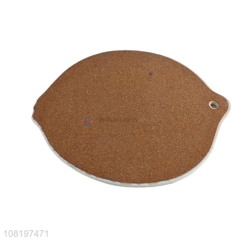 Wholesale lemon shape ceramic heat insulation mat with cork base