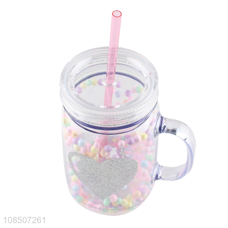 Yiwu factory plastic 550ml straw water mug water cup with handle