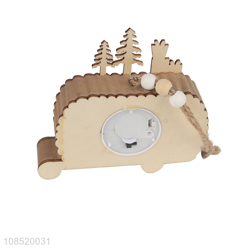 New product Christmas ornaments hanging led light wooden bus craft