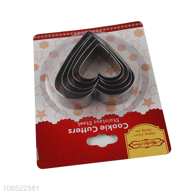 China factory 5pcs/set stainless steel heart shape cookies cutters