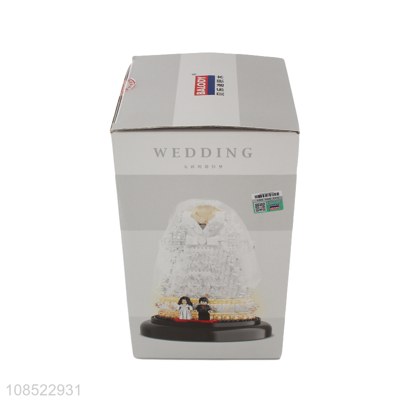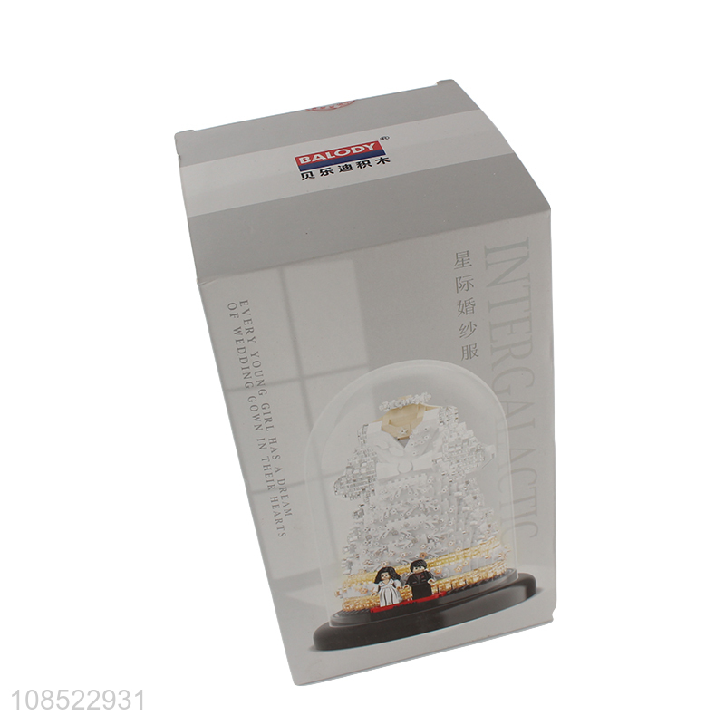 Wholesale led light white wedding dress building block toys for girls