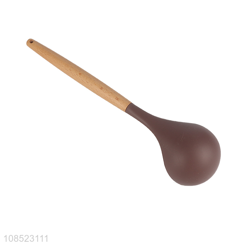 Good quality silicone kitchen utensils soup ladle with wooden handle