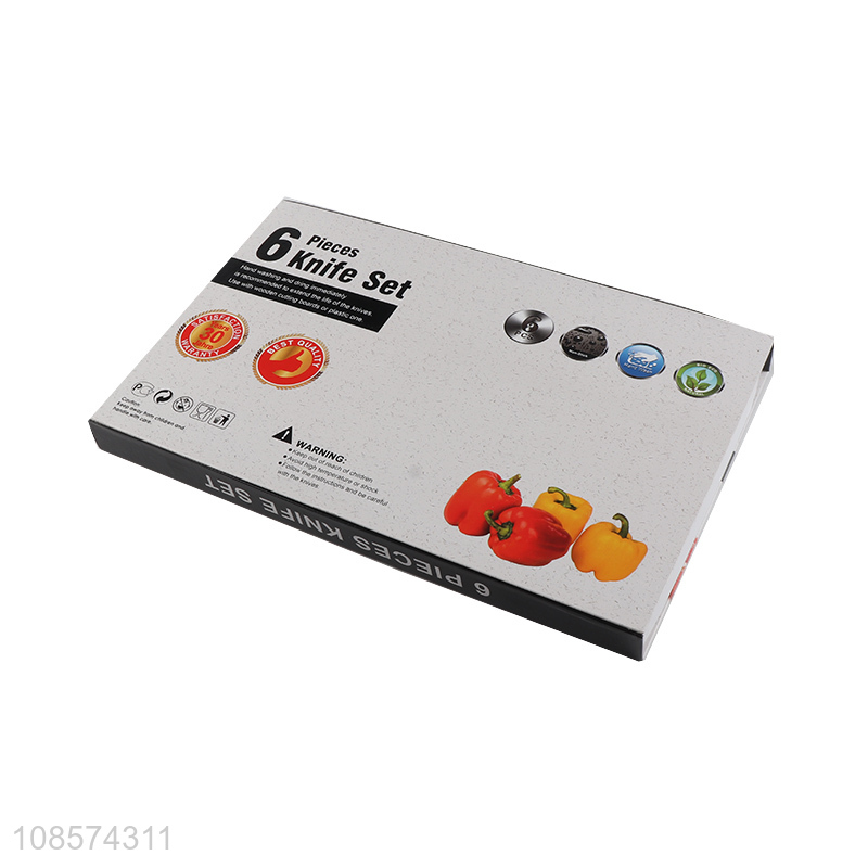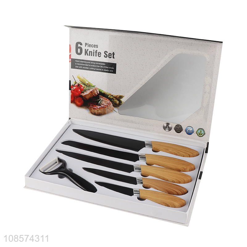Popular design 6pcs kitchen knives set with chef knife, bread knife, cleaver, all-purpose knife, paring knife & peeler