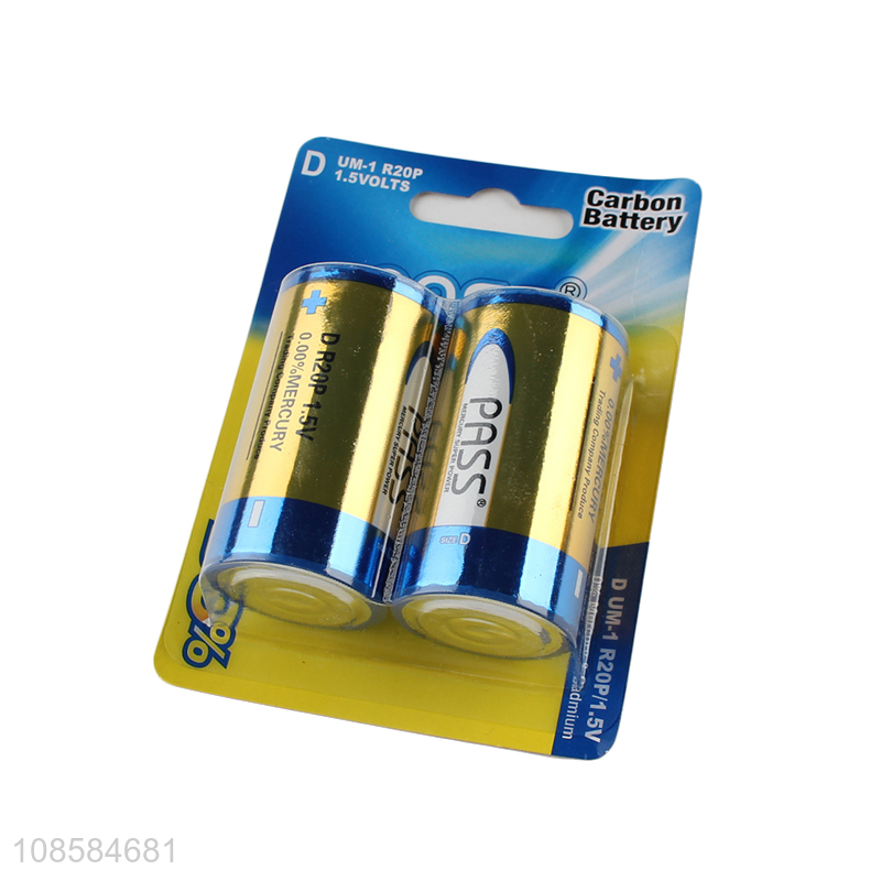 Factory wholesale 2 pieces type D carbon-zinc batteries