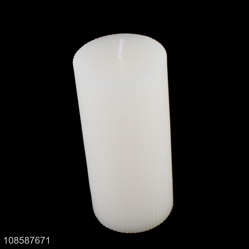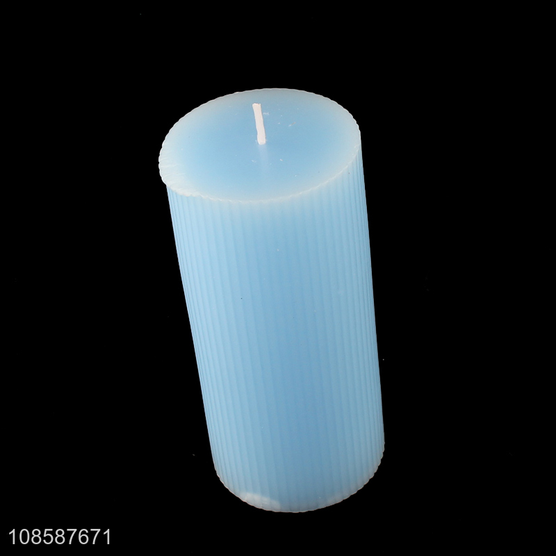 Good quality colored fragrance free smokeless ribbed pillar candle