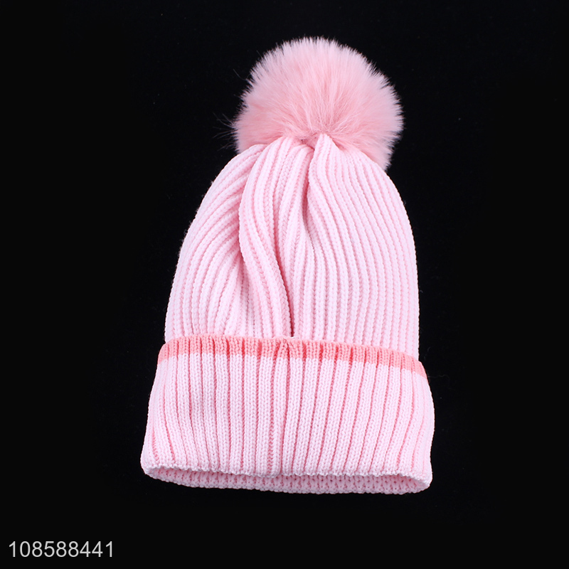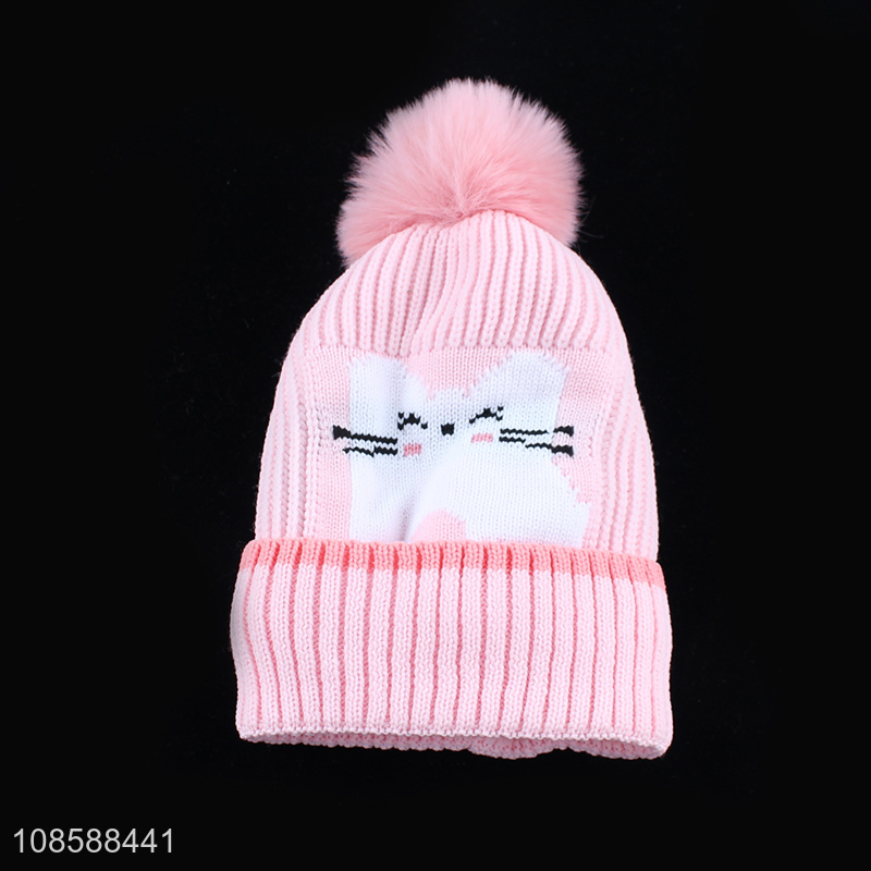 China products pink warm thickened children knitted beanies hat