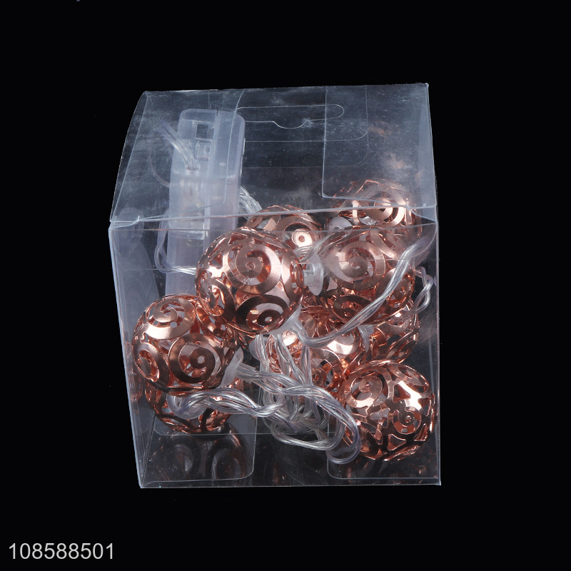 Wholesale AA battery operated rose gold hollowed-out metal ball led string light