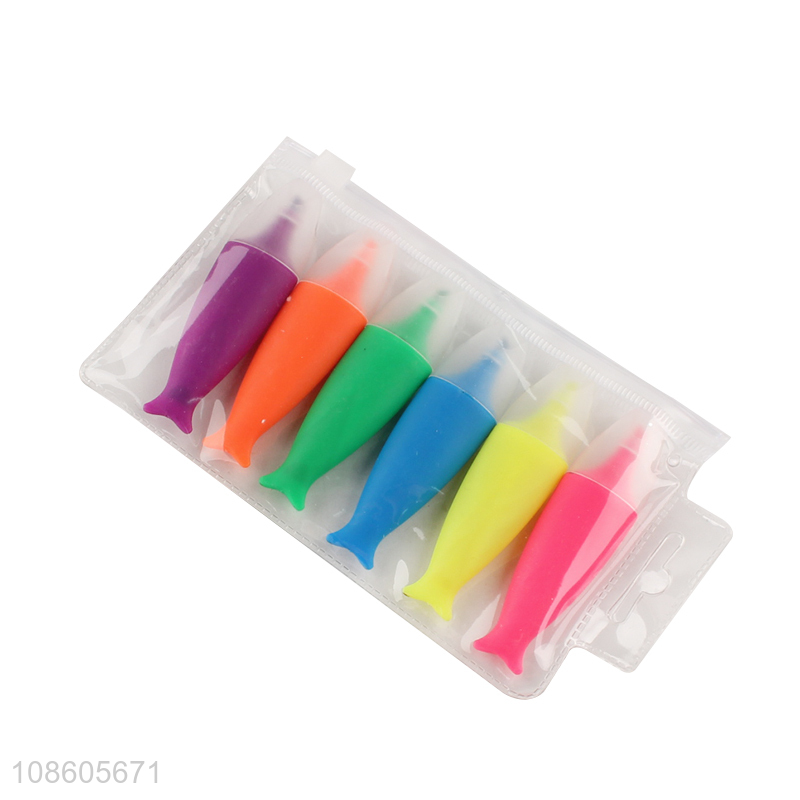 Factory wholesale 6pcs mini highlighters fish shaped marker pens