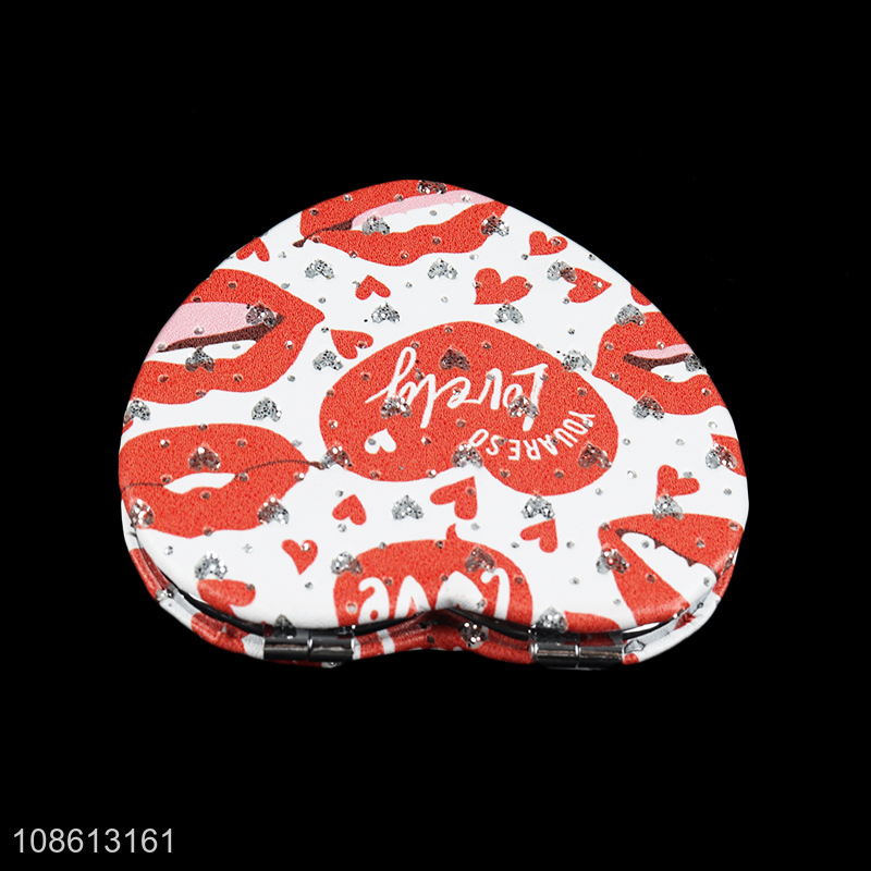 Yiwu market heart shape foldable makeup mirror pocket mirror
