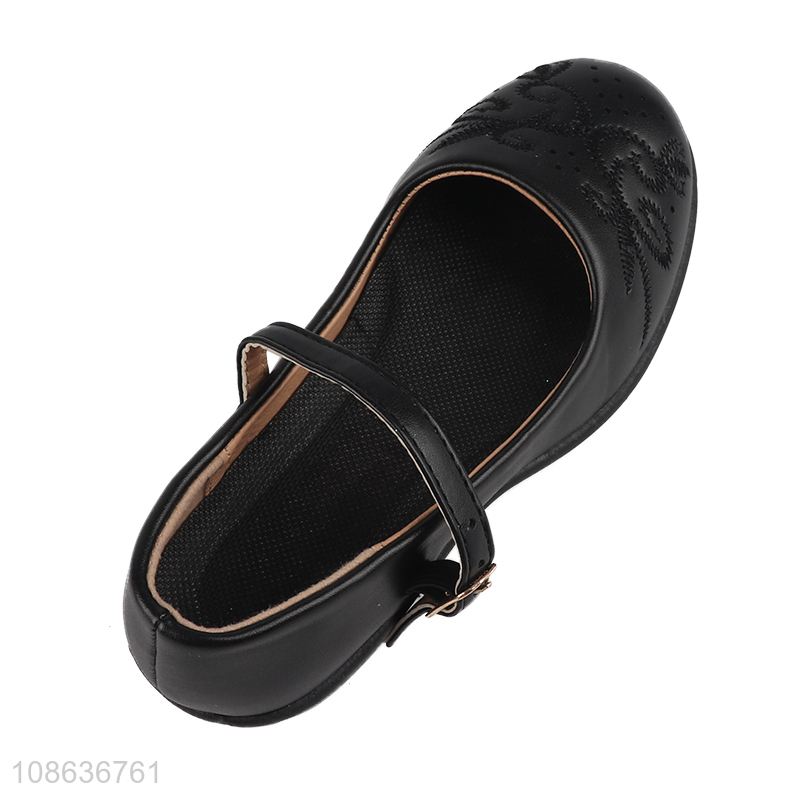 Good selling black girls children leather shoes wholesale