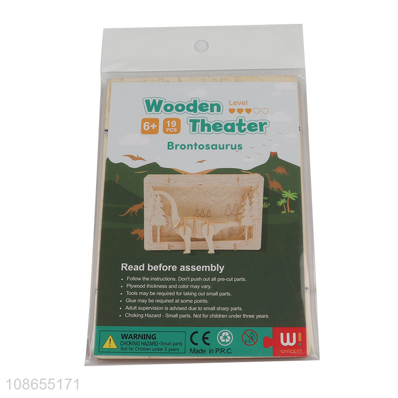Good quality 19pcs kids wooden theater brontosaurus series puzzle toys