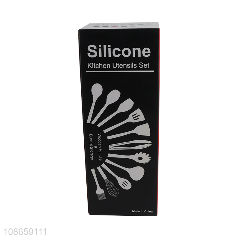 Top selling 12pcs silicone kitchen utensils set with wooden handle