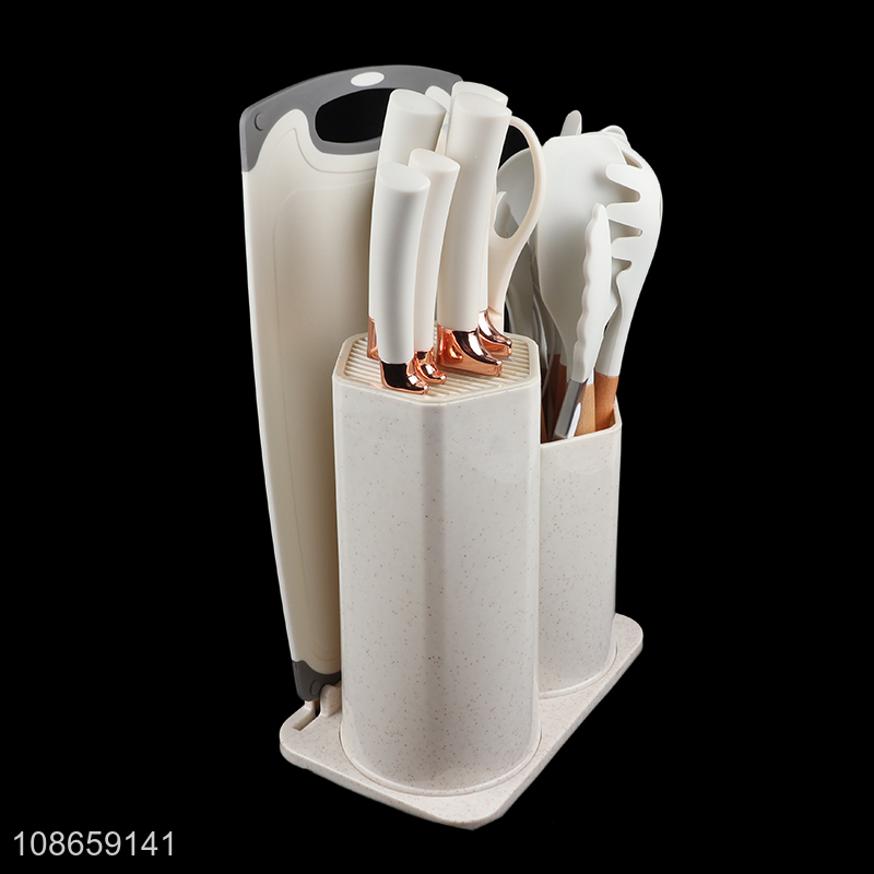 Good quality 18pcs silicone kitchen utensils set with kitchen knife