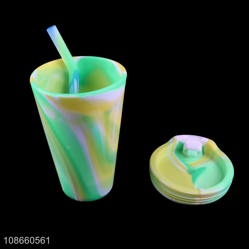 High quality unbreakable food grade silicone water cup with straw