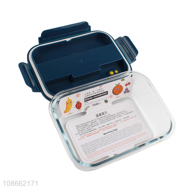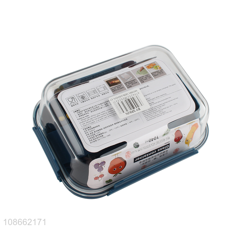 Hot selling 1040ml glass food crisper fresh-keeping box with cutlery