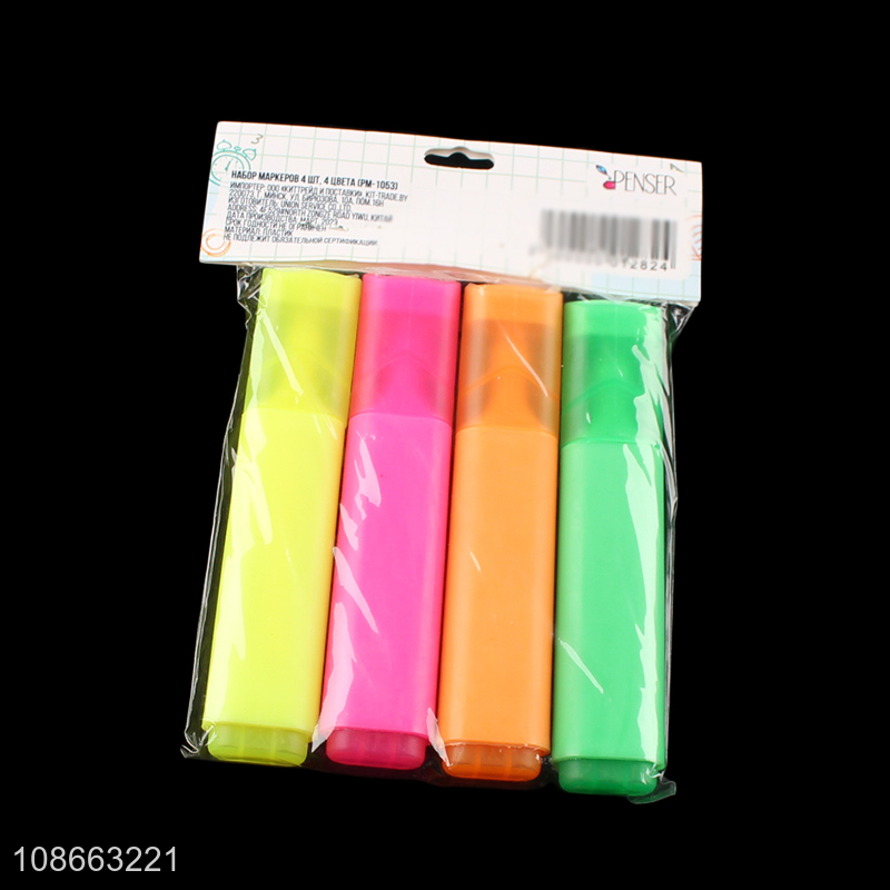 Wholesale 4 colors quick dry highlighter pens chisel tip marker pens