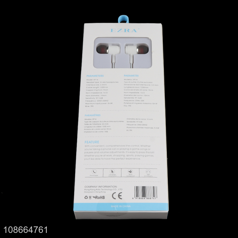 Wholesale 120cm stereo music in-ear earbud wired earphones headphones
