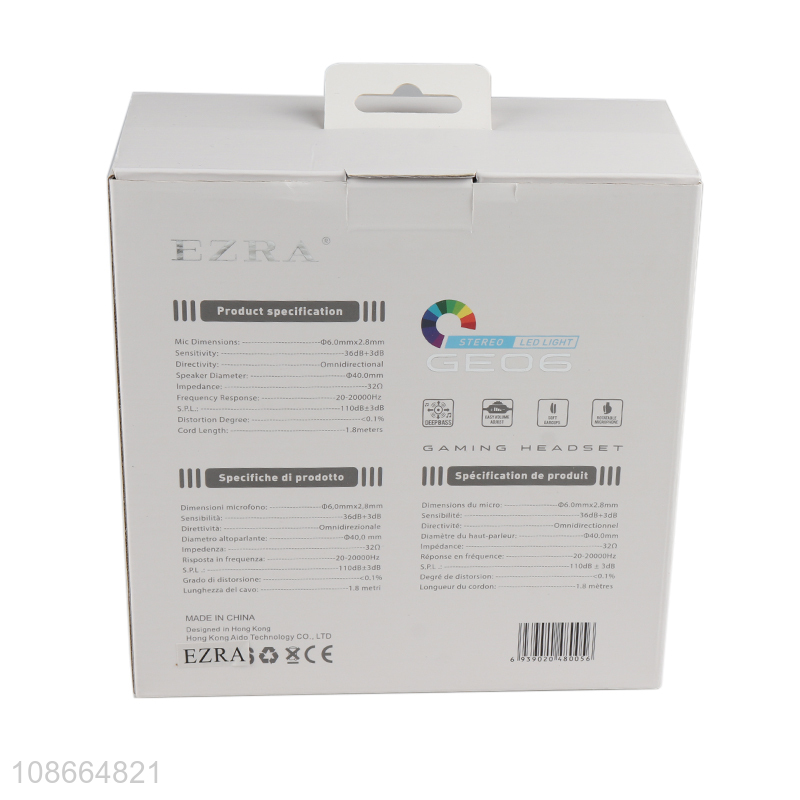 Wholesale folding stereo wired headphone gaming headset with led light