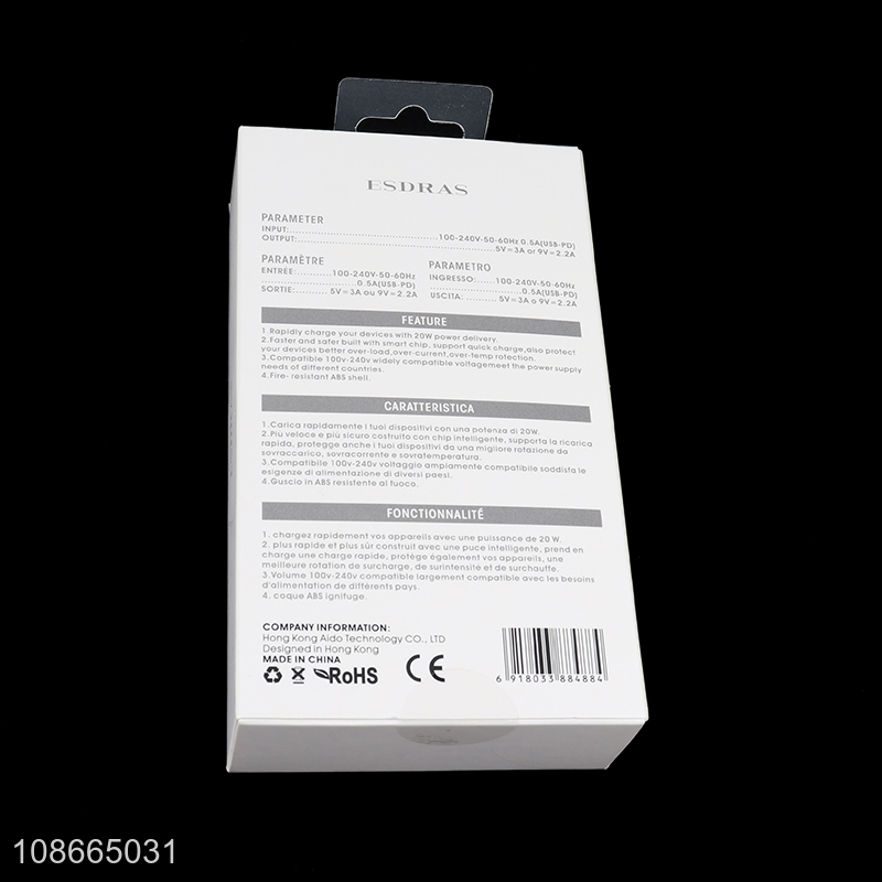 Wholesale 9V/2A 5V/3A 20W PD iPhone fast charger mobile phone charger