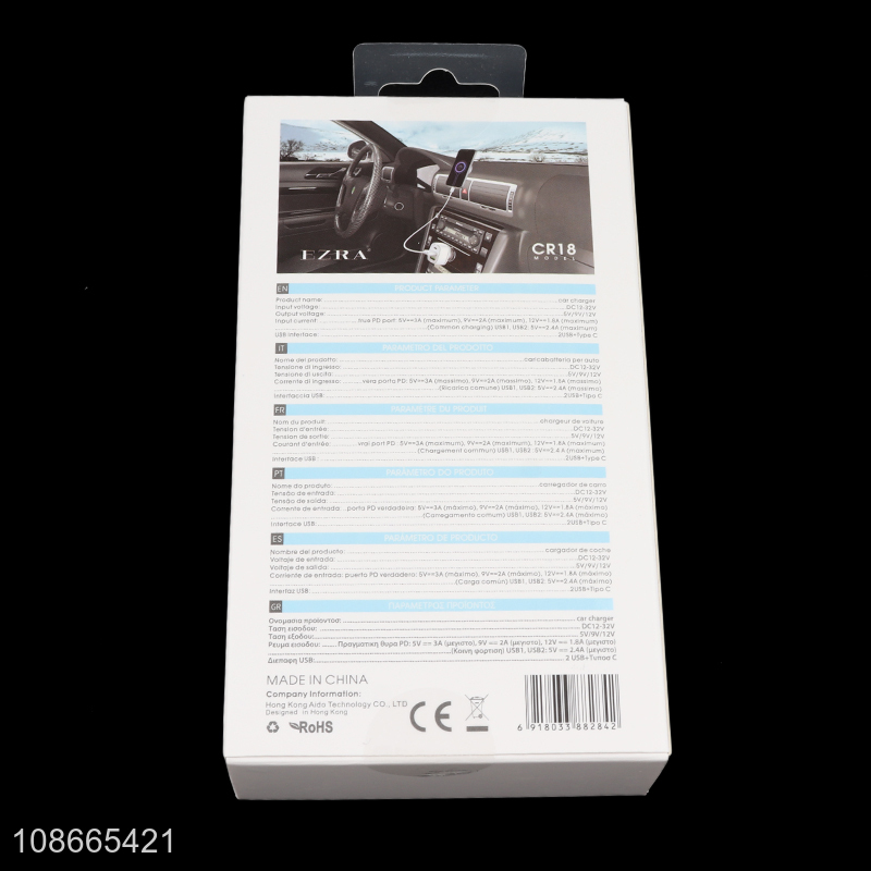 Most popular three ports usb type-c fast charging car charger for cellphone