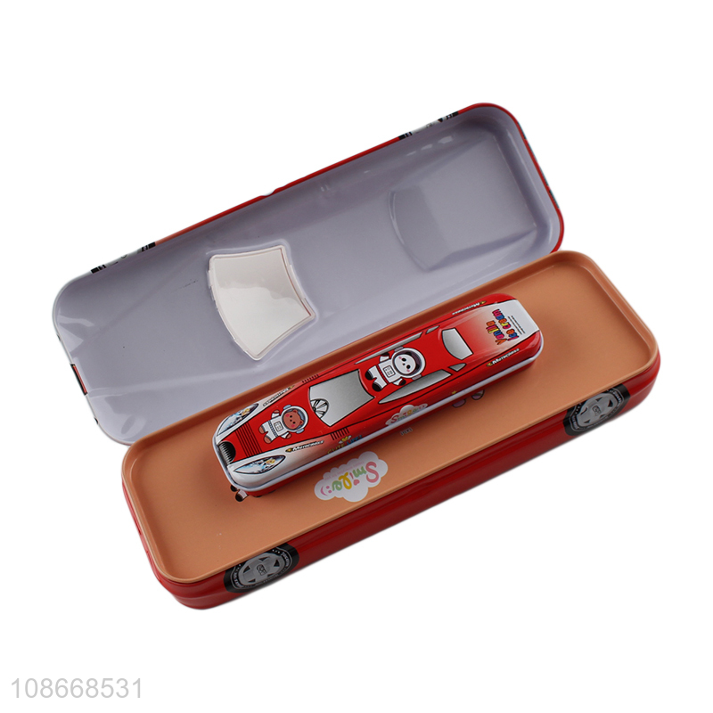 New arrival student stationery double layer cartoon car shape pencil box