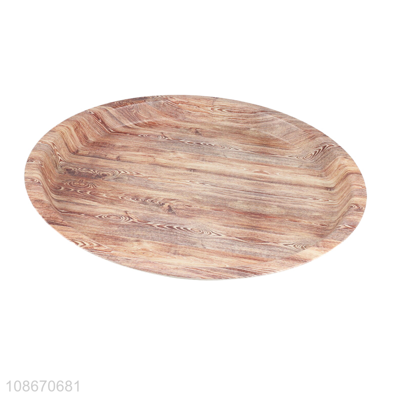 Factory supply round wood grain plastic food serving tray