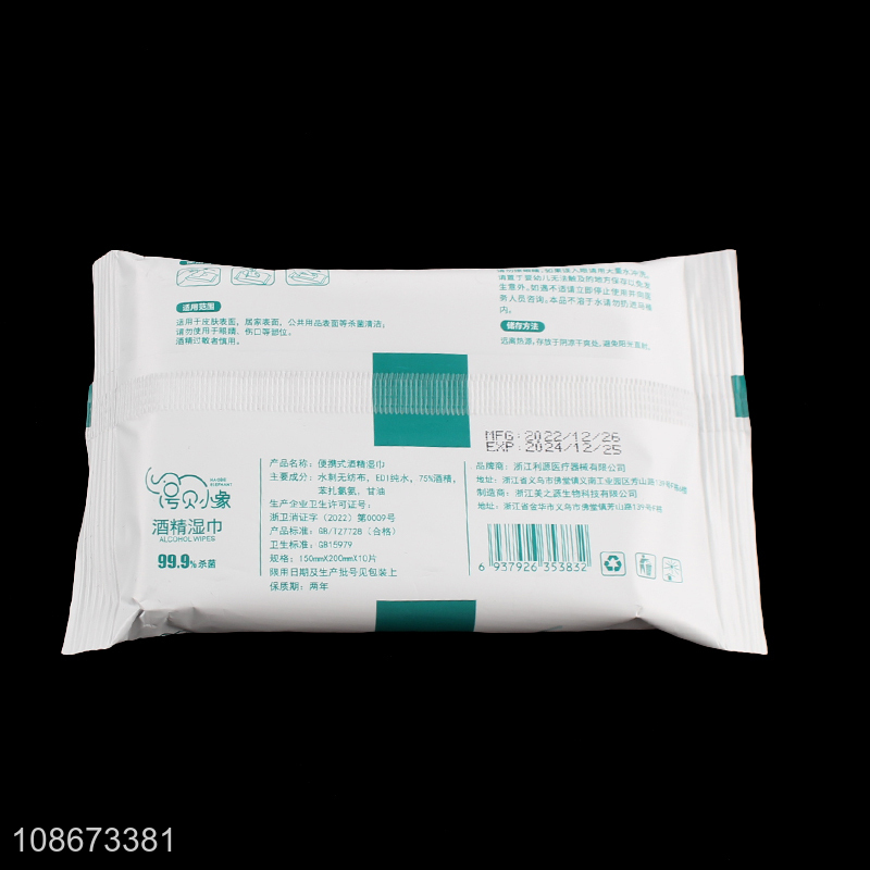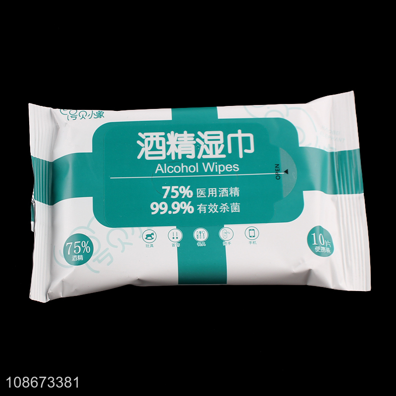 High quality 10 sheets multipurpose 75% alcohol antiseptic disinfecting wipes