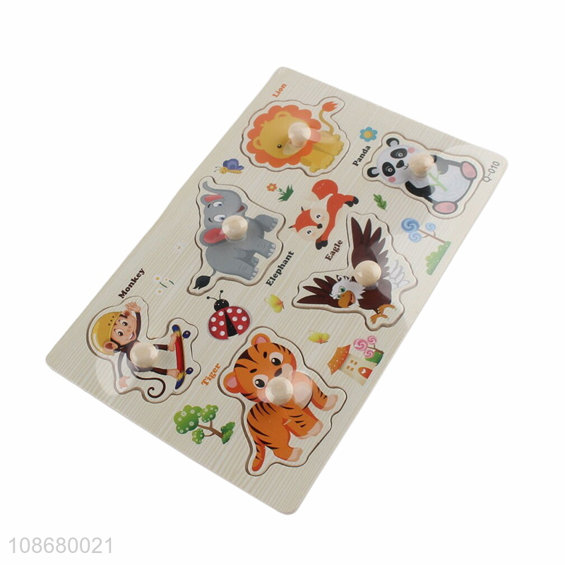 High quality cartoon jungle animal wooden puzzle toy learning toy