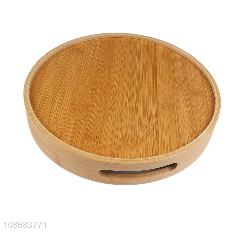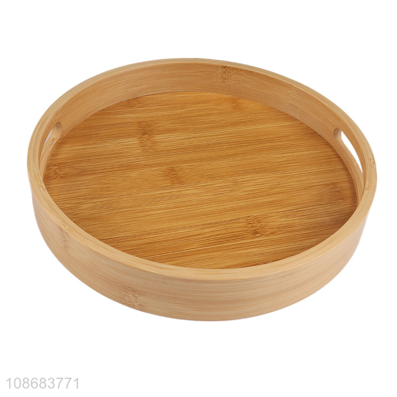 Good quality round bamboo serving tray with handle for coffee table