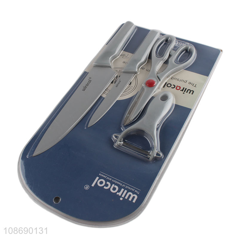 Factory price 4pcs kitchen knife set kitchen scissors and fruits peeler set