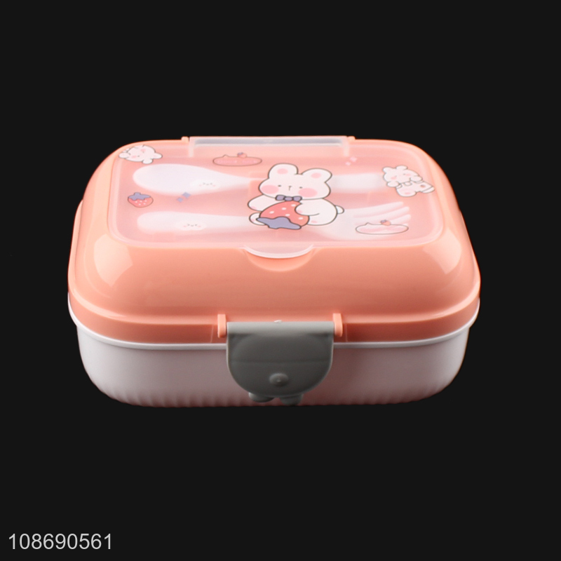 New product double layered plastic lunch box with spoon and fork for kids