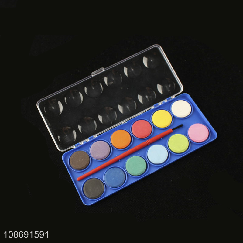 Yiwu market 12colors kids solid watercolor paint set with paint brush