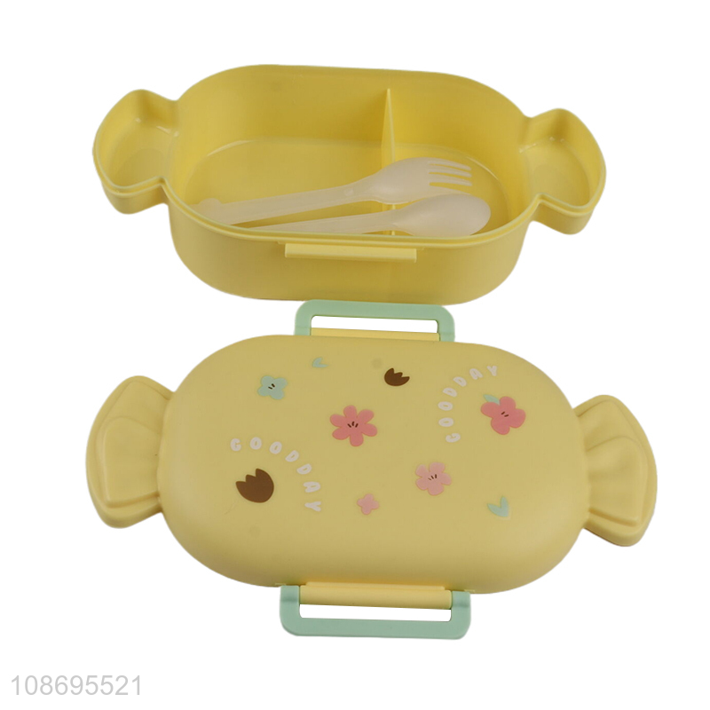 New product cartoon candy shaped bpa free plastic lunch box with cutlery