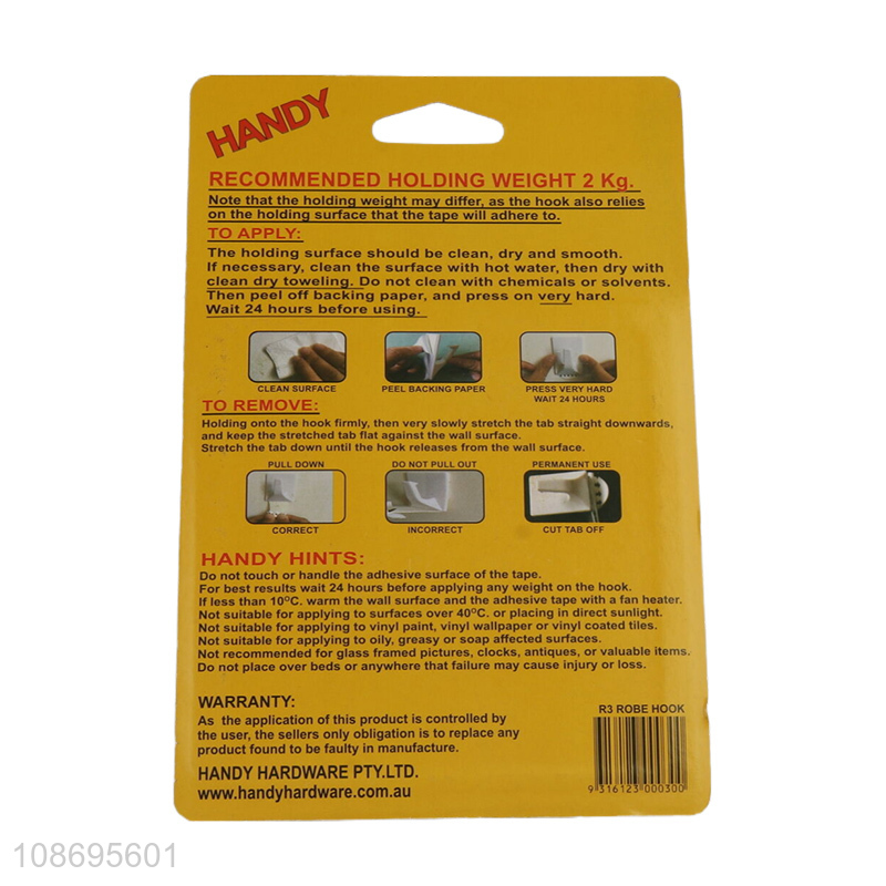 Factory price 2pcs heavy duty wall hanging hooks plastic sticky hooks