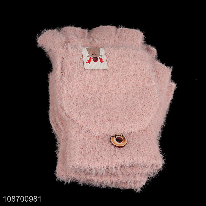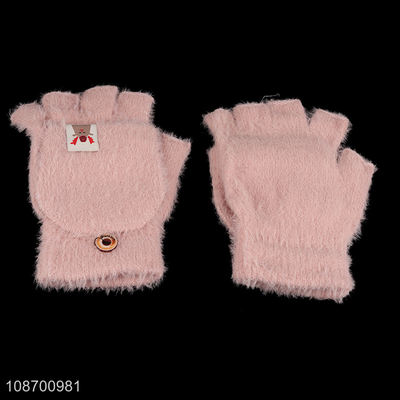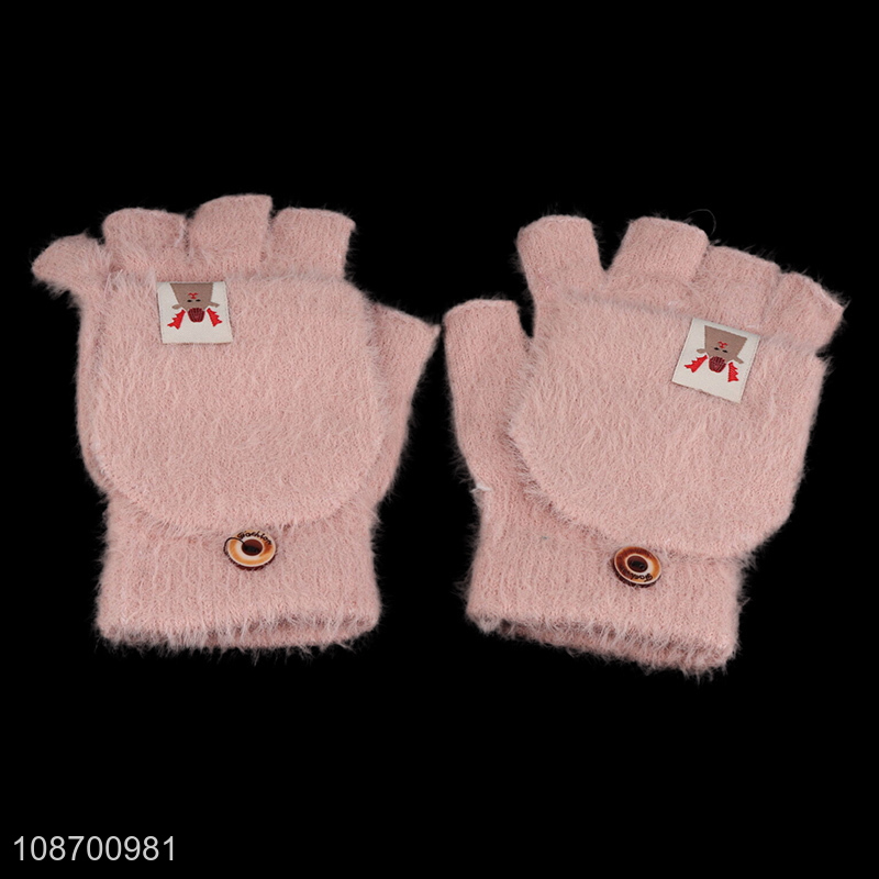 Popular products pink girls half finger winter gloves polyester gloves for sale